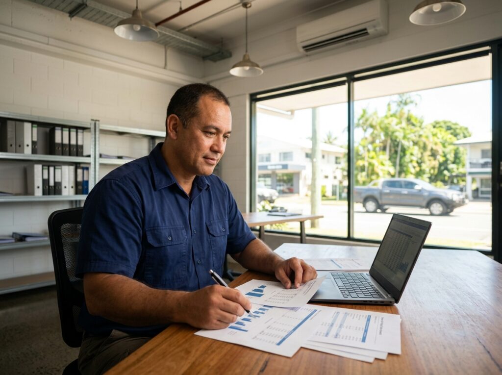Sam Harrop is a Cairns-based business coach with 25+ years of entrepreneurial experience and 600+ Queensland businesses coached. He helps tradies and service business owners make more money and win back their weekends.